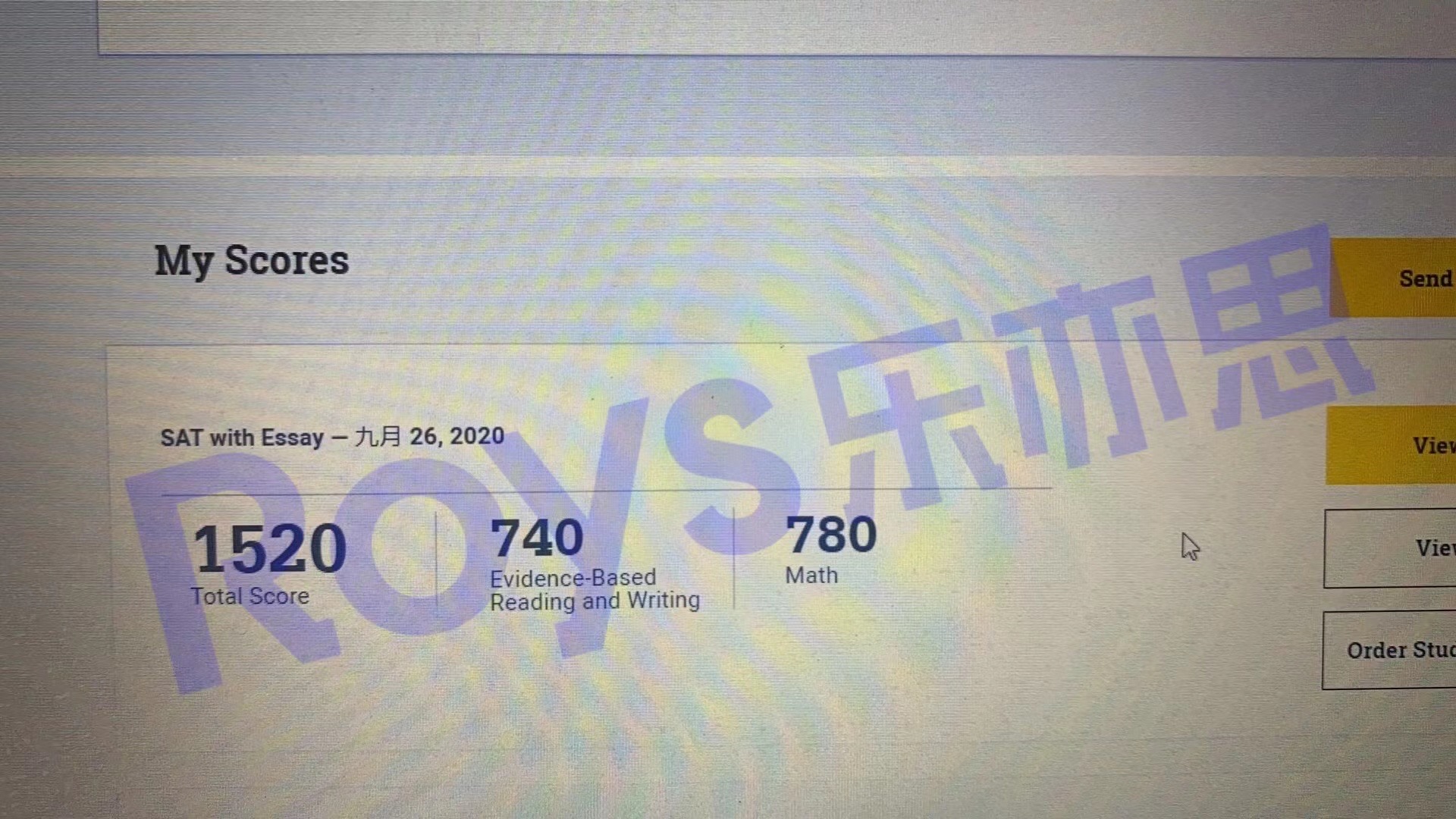 今天我們Roys樂亦思9月SAT考?的試?第8位高分學(xué)?是員?來自去年暑假全?班程?的G同學(xué)?本,?次考試拿下1520分的高分?這!?也是樂亦思?計累?第829位1500+的高分學(xué)員?備,?考期間我們不?跟斷?進(jìn),?次本?考試在數(shù)學(xué)?分部?失誤的情況下,?下拿?總分1520分?高的?分,祝賀祝?!賀???!