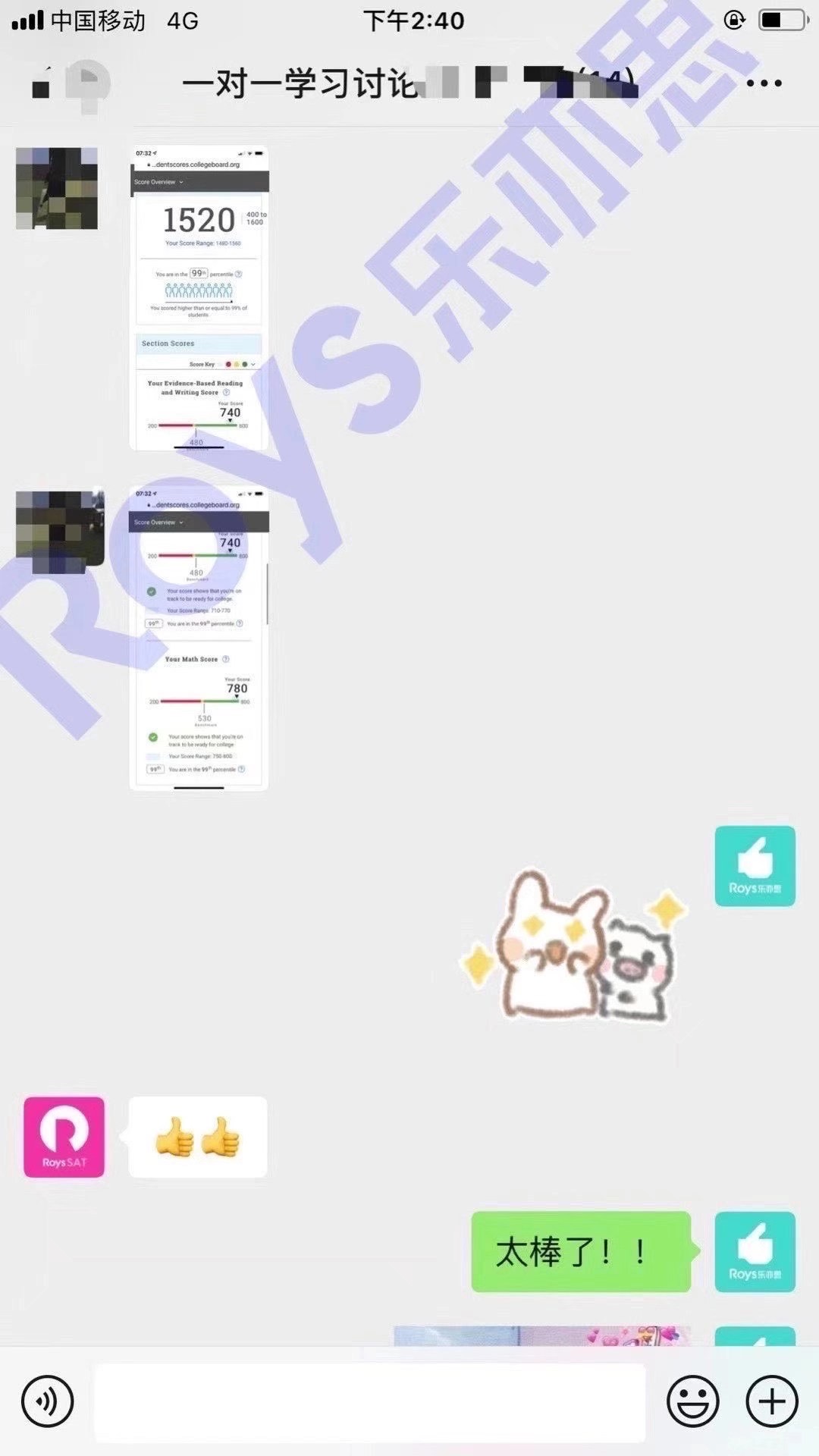 今天我們Roys樂亦思9月SAT考?的試?第11位高分學(xué)員是?年今?暑假一?一對?學(xué)員S同?,學(xué)?本次考?拿試?下1520分的高分?這!?也是樂亦思?計累?第832位1500+的高?學(xué)分?員,在老師和?導(dǎo)督?的不斷幫助下,本?考次?試拿?總下?分1520分?祝,?賀你??。?!