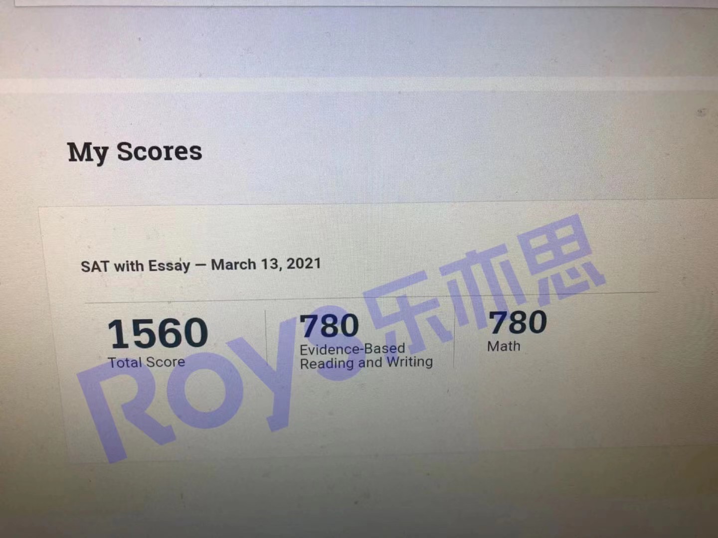 Roys樂(lè)亦思3月SAT考?的試?第8位高分學(xué)員?來(lái)是?自加拿大的C同學(xué)?也,?是我們第173位1550+的?分高?學(xué)員?在!?老師?督和?導(dǎo)的不斷?督監(jiān)?和幫?下助?,突破自己?數(shù),?學(xué)部分小有失?,誤?本次考試仍然?下拿?了1560分的?對(duì)絕?高分!?!!?祝賀?賀祝??。?!
