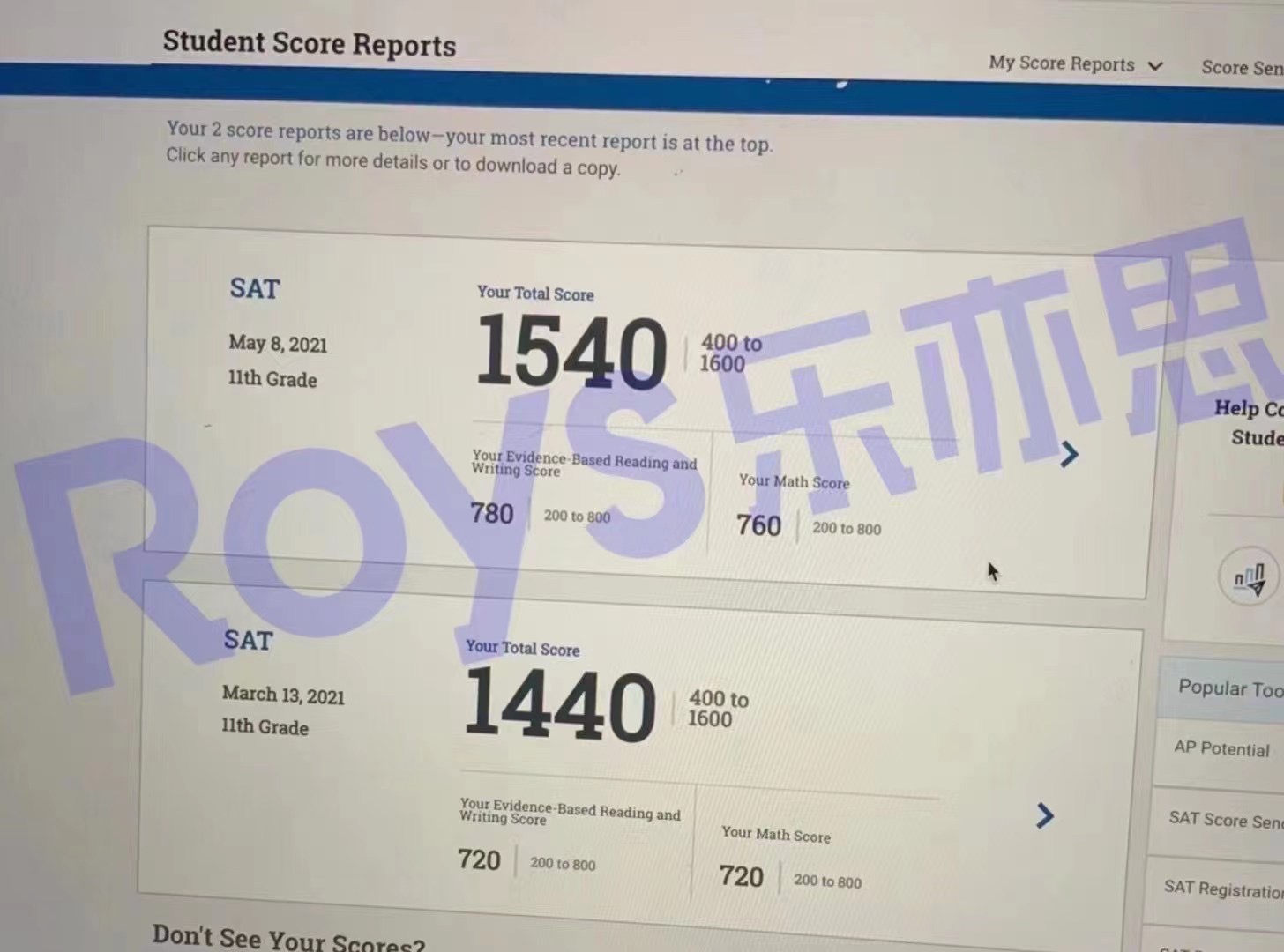 Roys樂亦思5月SAT考?的試?第3位高?學分?員是參加?我了?們一對一?的程課?G同學,也?第們我是?867位1500+的?員學分高?!