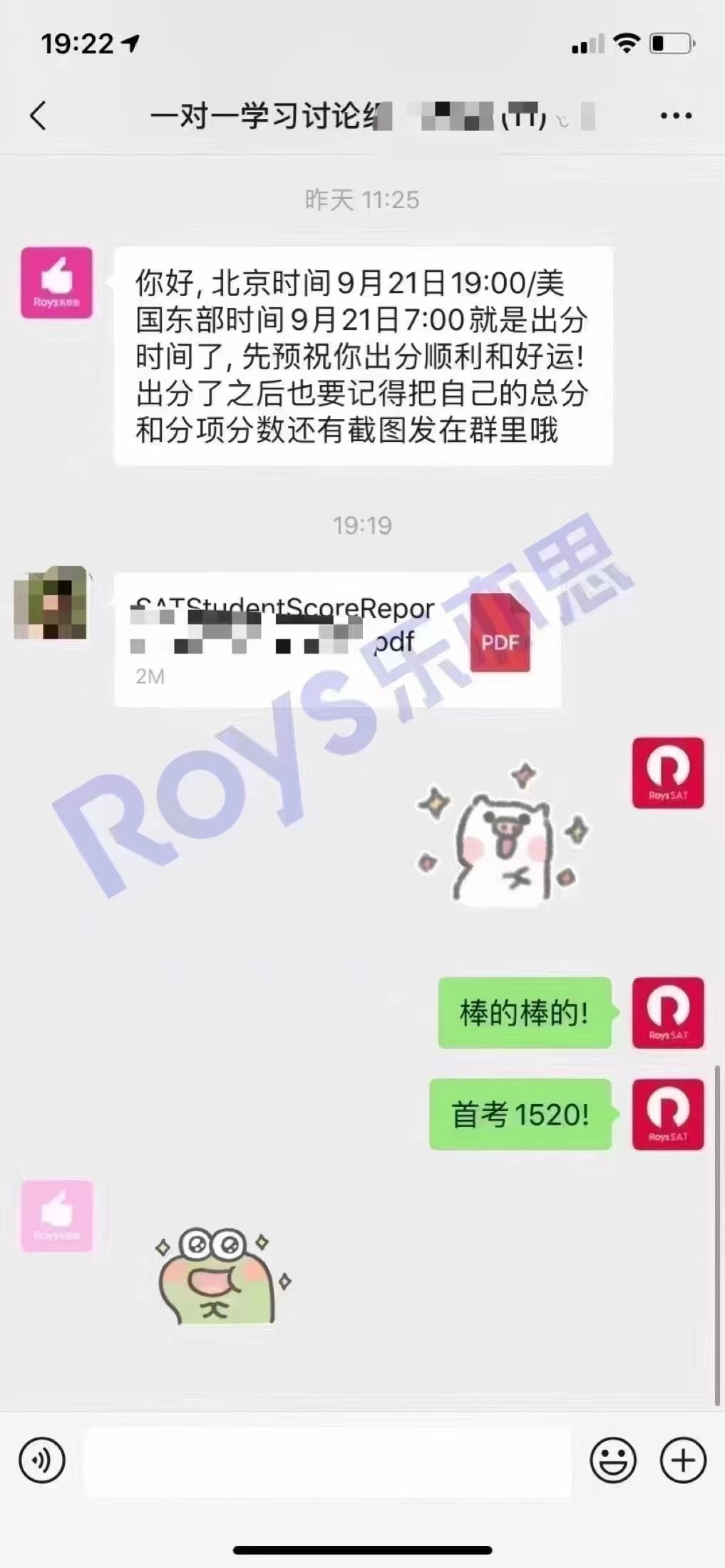 也是我們累計(jì)第814位1500+的高分學(xué)員,今年暑假在Roys樂亦思培訓(xùn)之后,本次成功取得1520分,恭喜?。?!