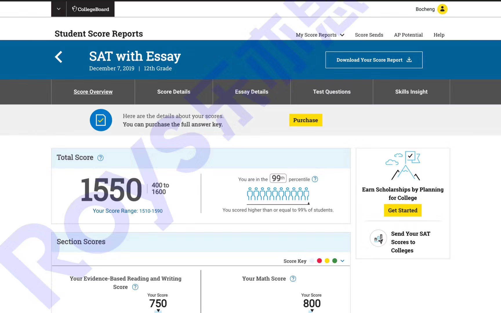 Roys樂(lè)亦思12月SAT考試的D同學(xué),參加了去年寒假班課程后,不斷努力,最終拿下1550的高分。