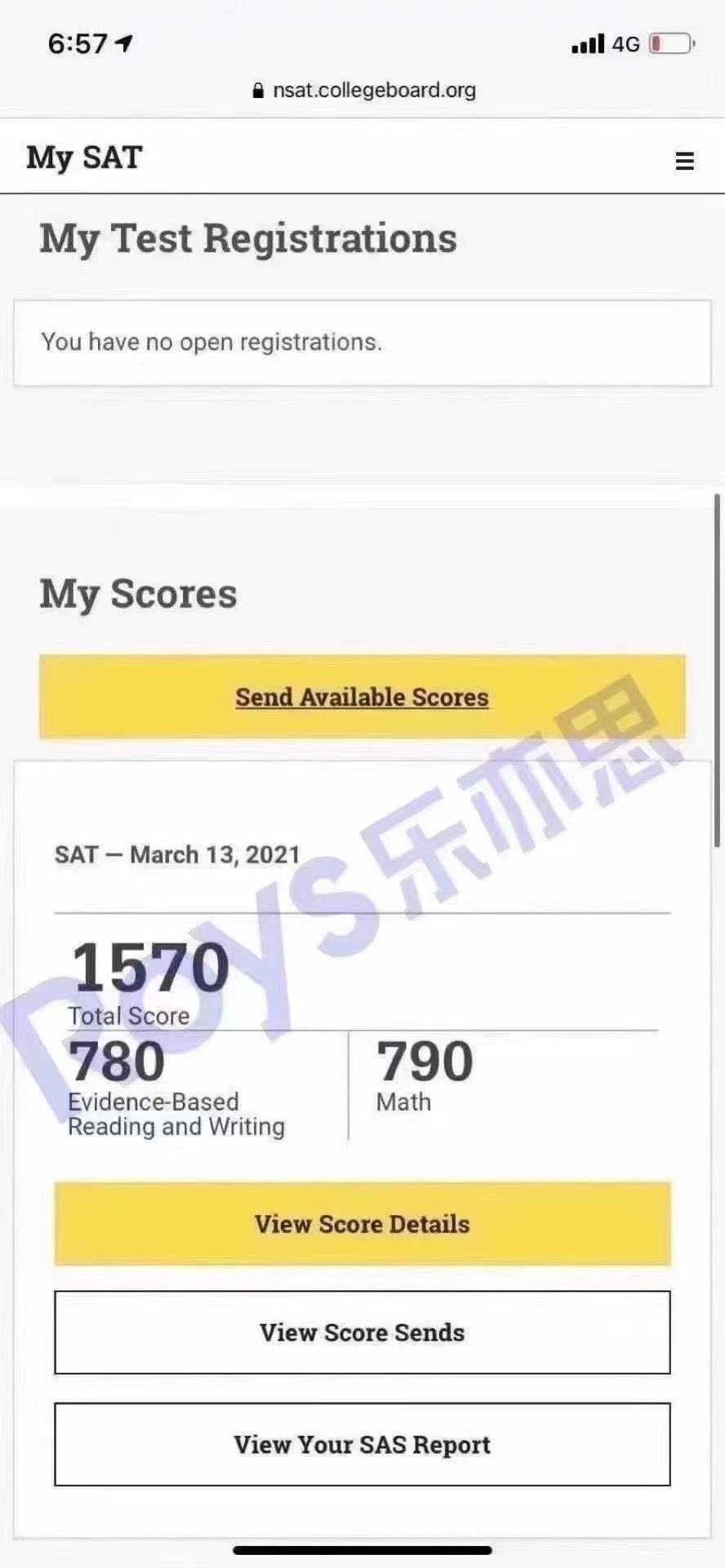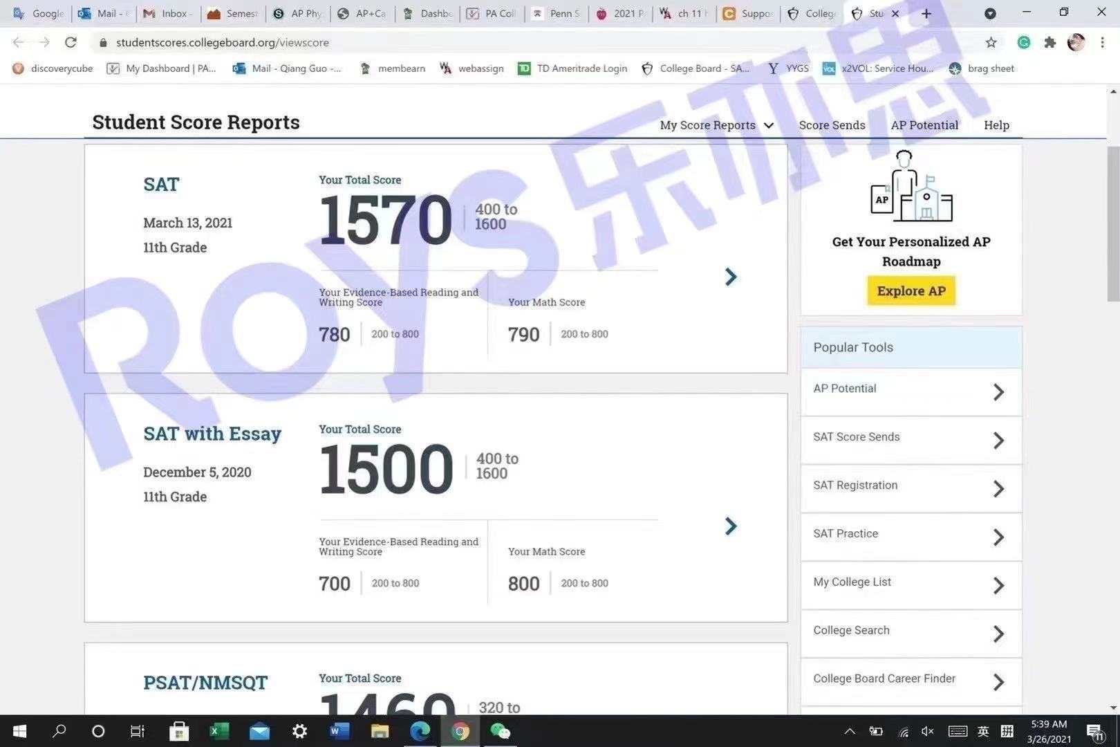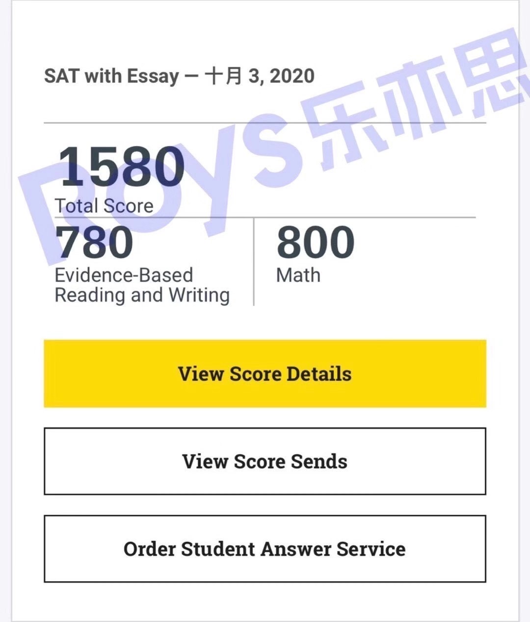 Roys樂亦思2021年3月SAT考試的第6位高分學(xué)員