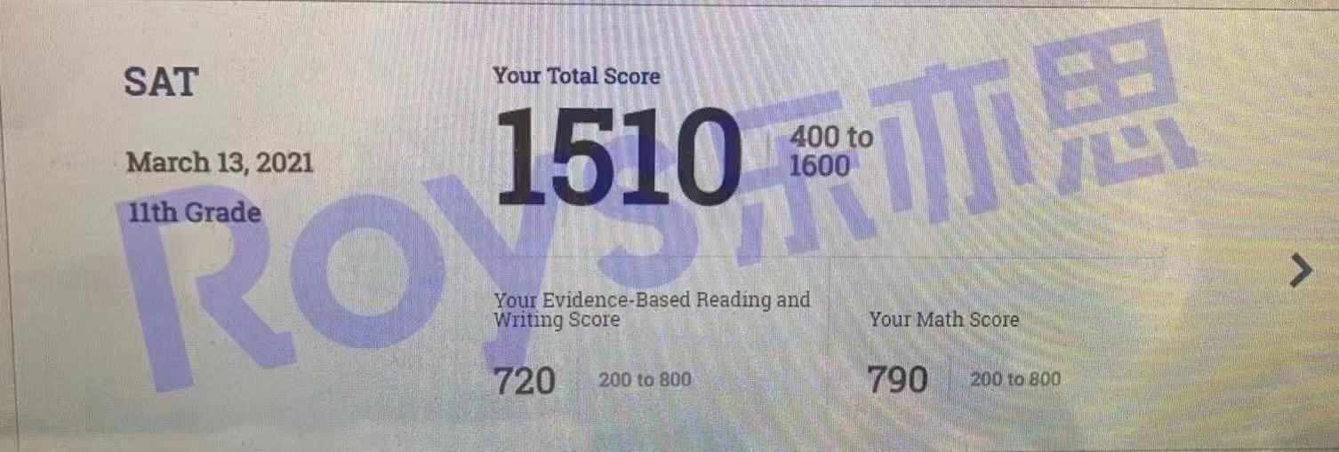 Roys樂亦思3月SAT考?的試?第1位?分高?學(xué)員,也是我們第852位1500+的高分學(xué)員?是?來自2020年暑假全程?的班?美高學(xué)員Z同?學(xué)