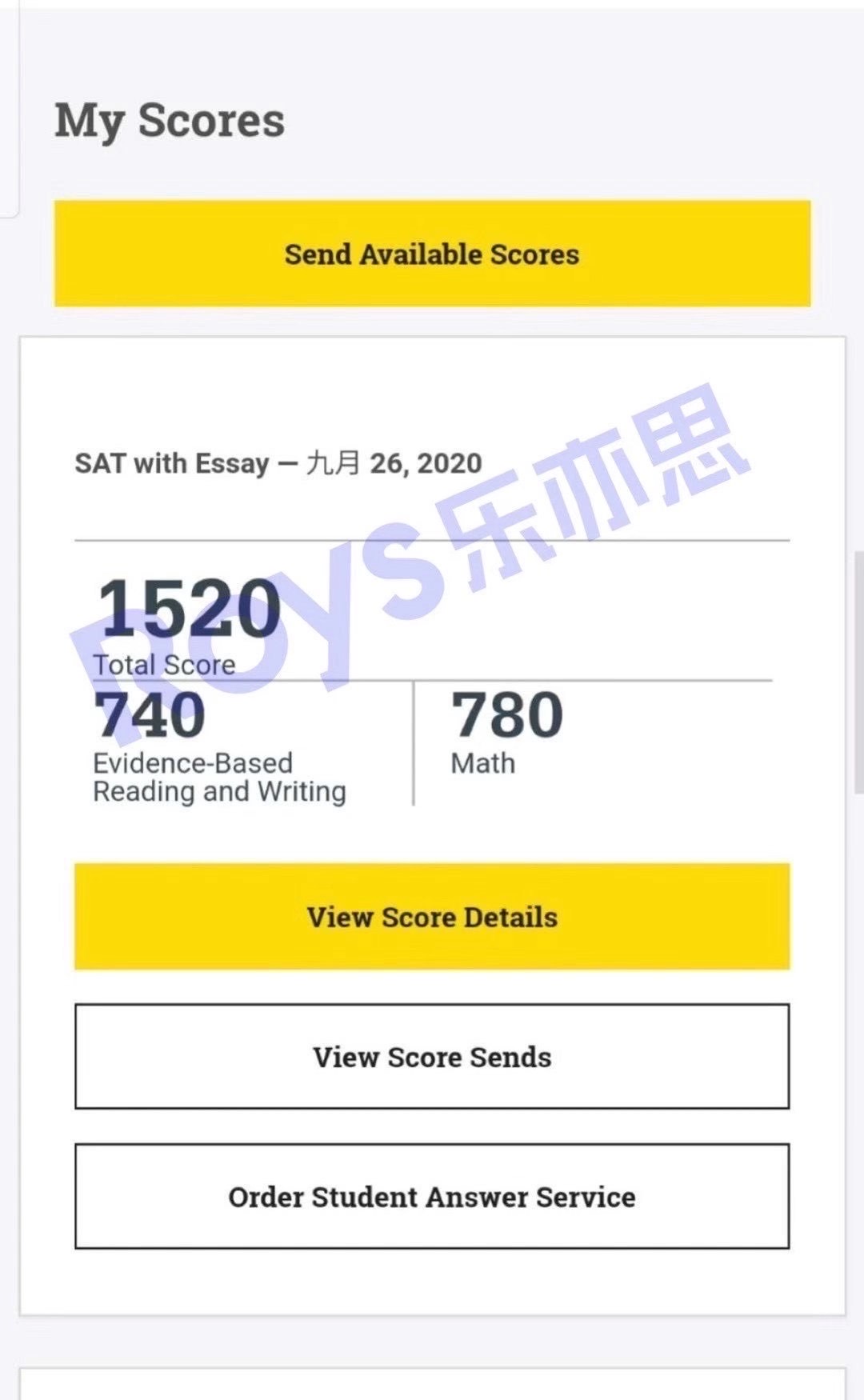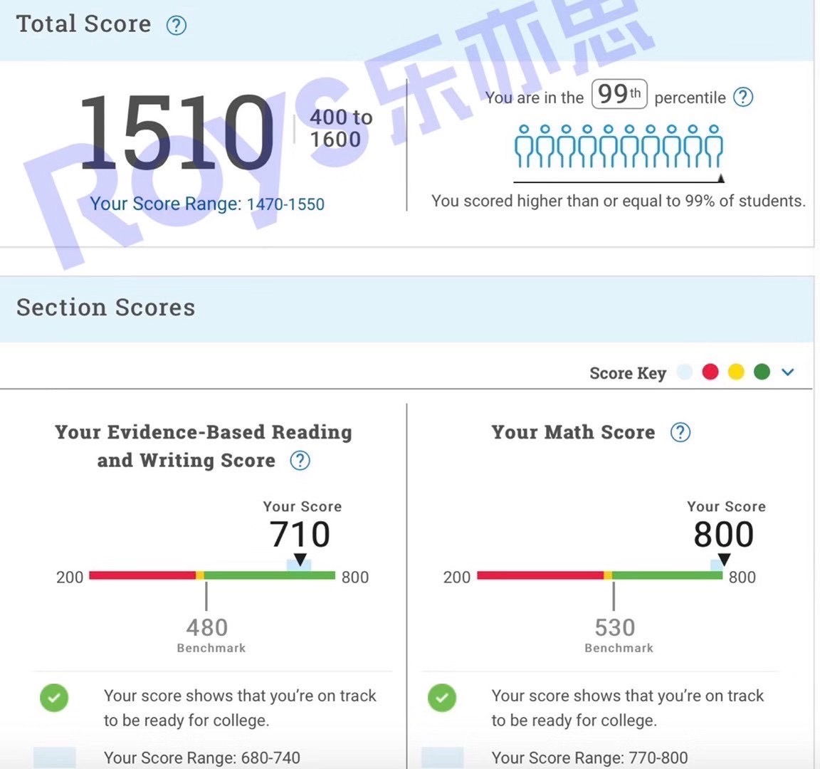 Roys樂亦思9月SAT考試的第8位高分學(xué)員