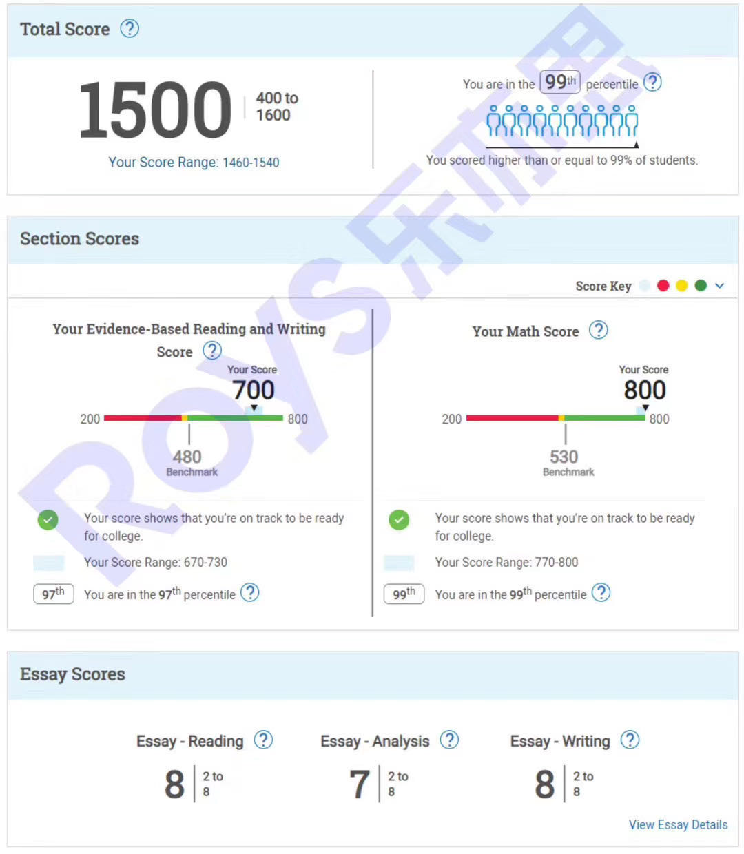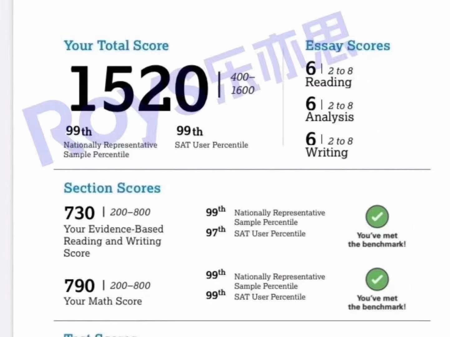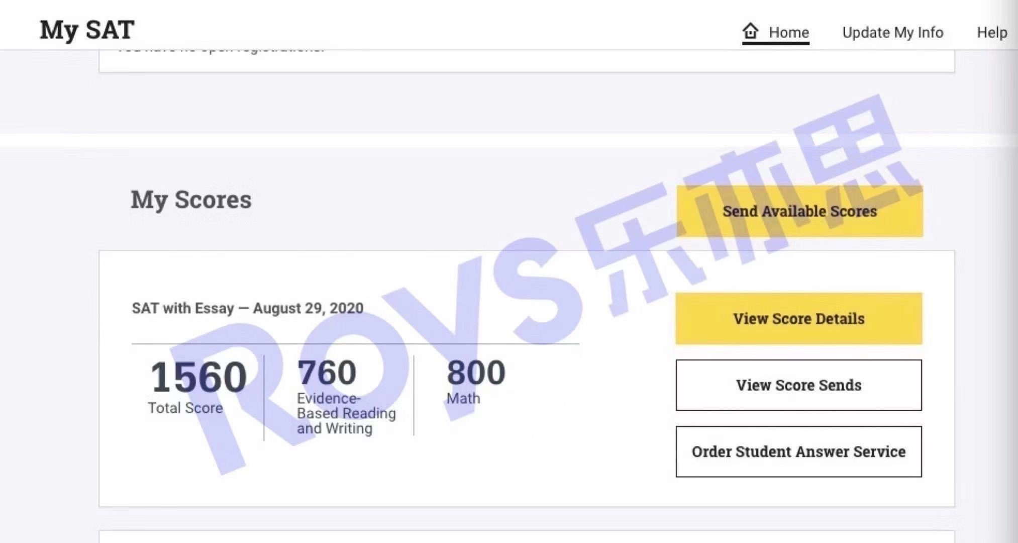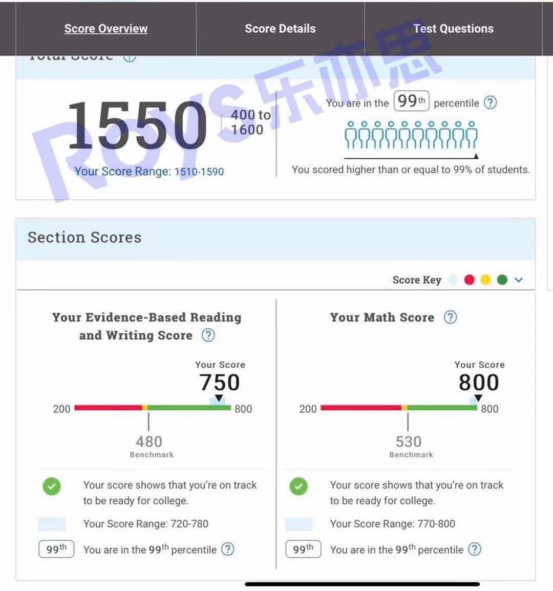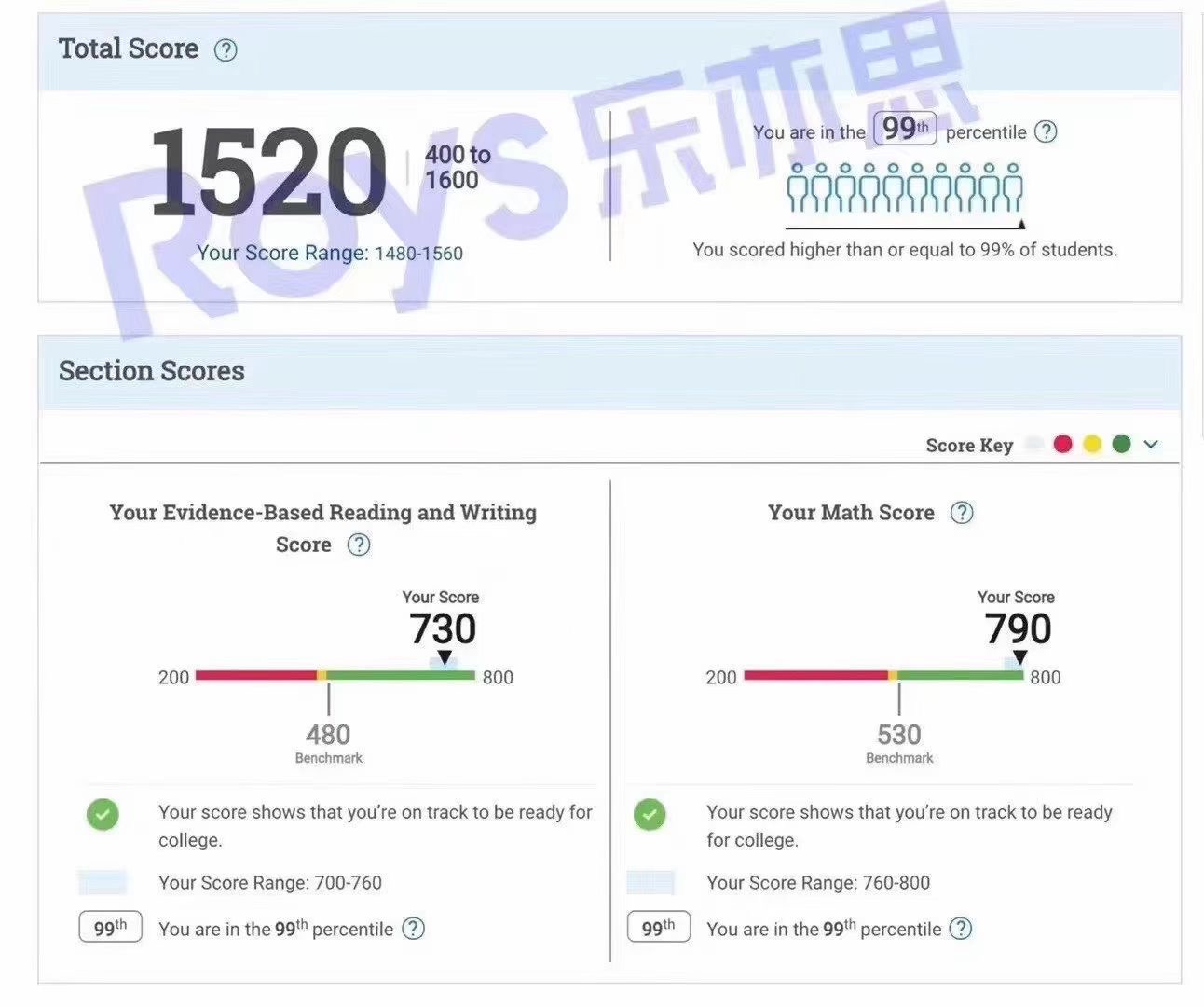 Roys樂亦思8月SAT考試的第7位高分學(xué)員