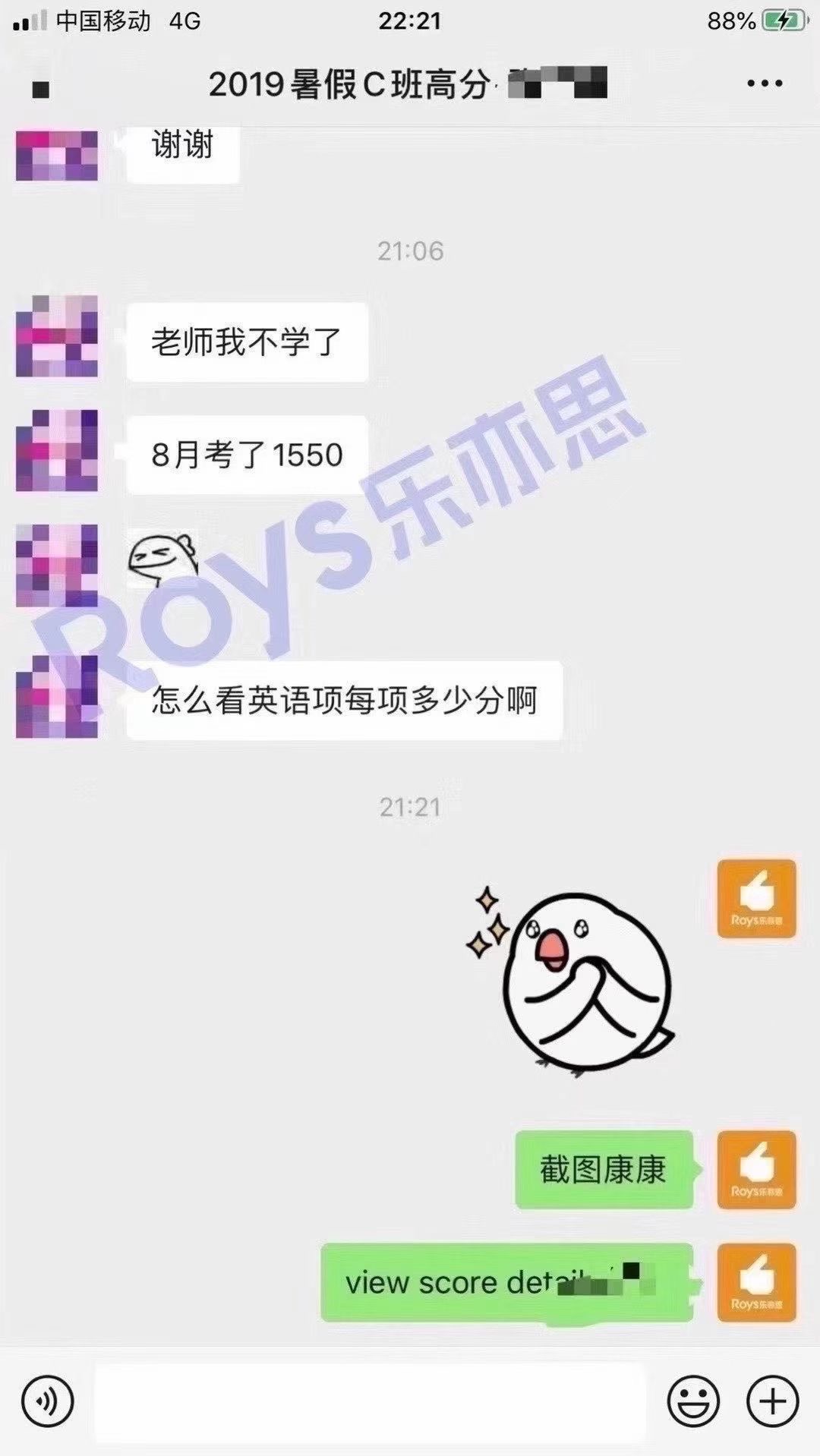 今?我天?們Roys樂亦思8月考試的第5位高分學(xué)員是?年今?線上全程班的L同學(xué),今年暑?培假?訓(xùn)過程?積中?極配?,合?課后認(rèn)真完?每成?一次的學(xué)習(xí)任?,務(wù)拿下?1540分的高分?!