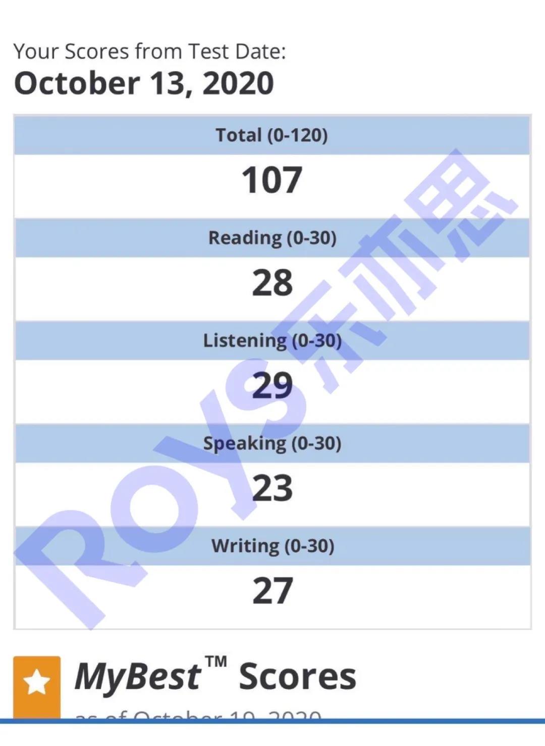 Roys樂亦思15天托福自習(xí)學(xué)生實(shí)現(xiàn)從102到107