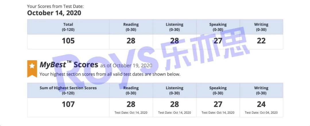 Roys樂亦思托福課程學(xué)員實現(xiàn)97到105的跨越