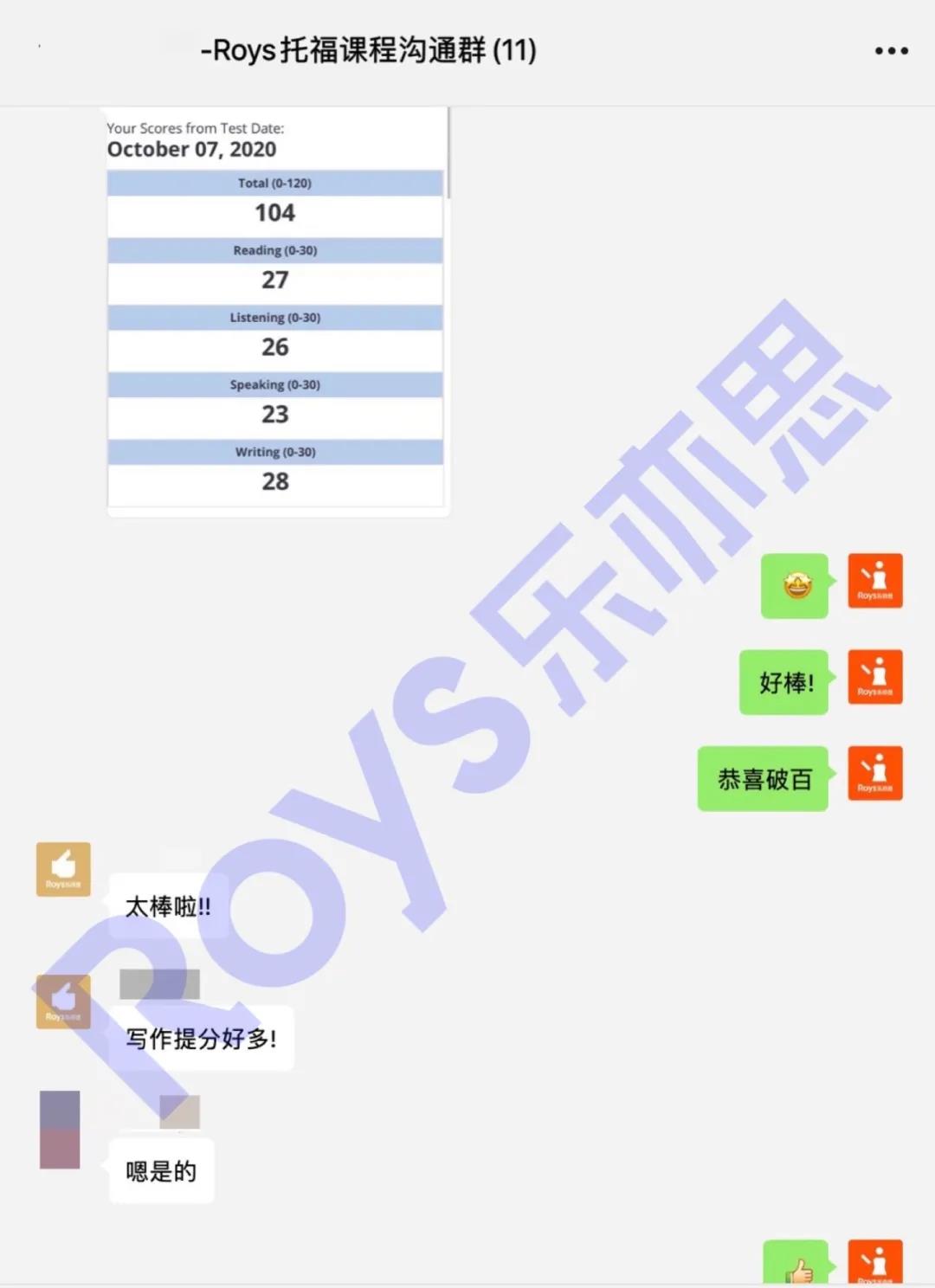 Roys樂亦思托福課程學(xué)員實(shí)現(xiàn)96到104的跨越