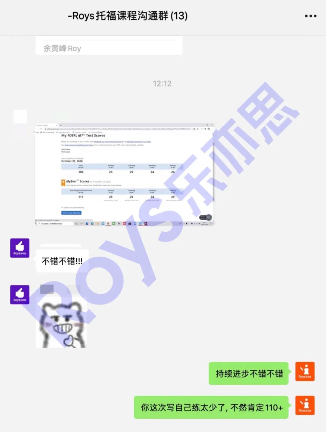 Roys樂亦思托福課程學(xué)員實現(xiàn)99到110的跨越