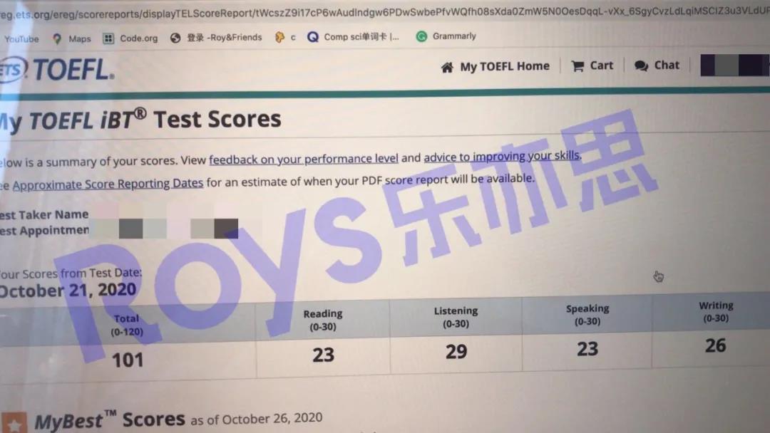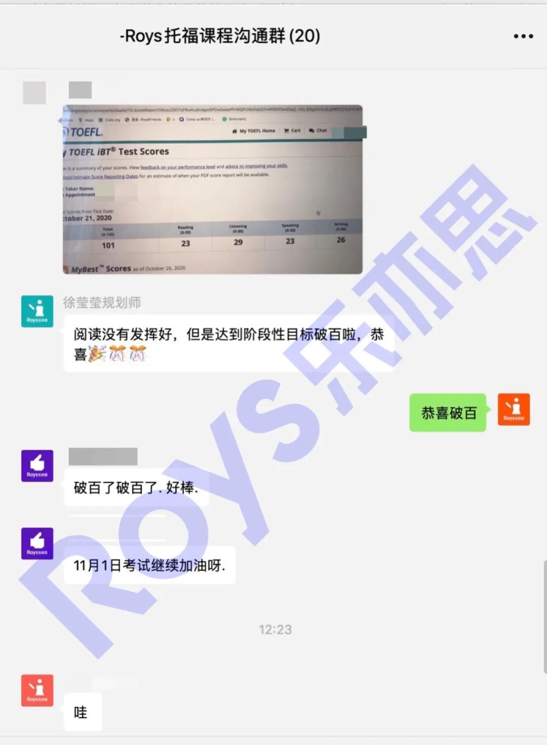 Roys樂亦思托福課程學(xué)員實(shí)現(xiàn)70到101的跨越