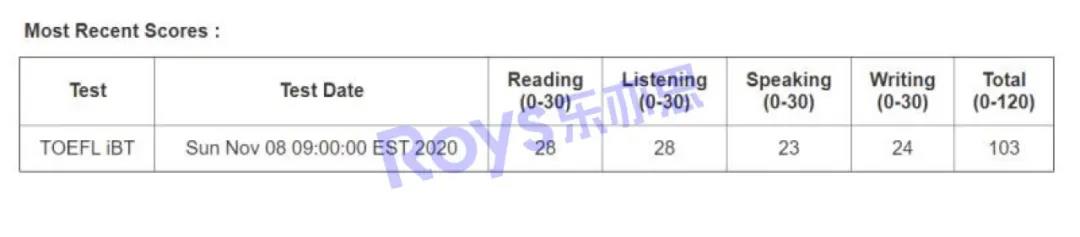 Roys樂(lè)亦思托福課程學(xué)員實(shí)現(xiàn)93到103的跨越