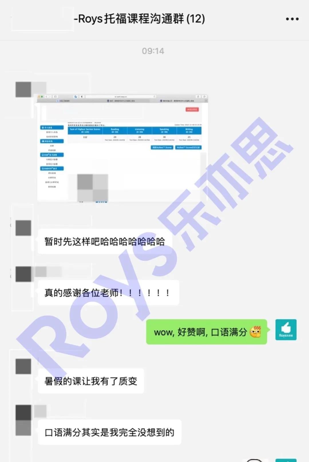 Roys樂亦思托福課程學(xué)員實現(xiàn)91到114的跨越