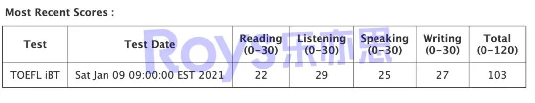 Roys樂亦思托福課程學(xué)員實(shí)現(xiàn)89到103的跨越