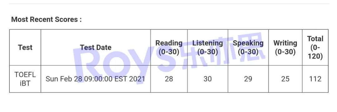 Roys樂亦思托福課程學(xué)員實(shí)現(xiàn)77到112的進(jìn)步