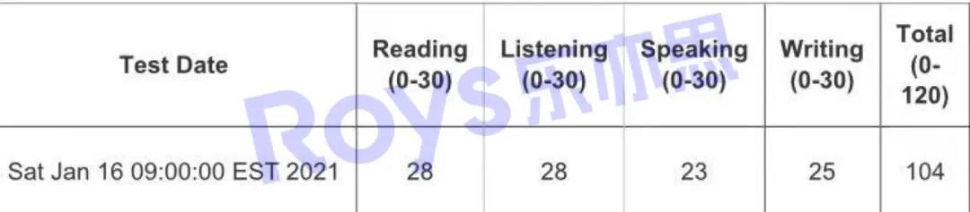 Roys樂亦思托福課程學(xué)員實現(xiàn)88到104的進步