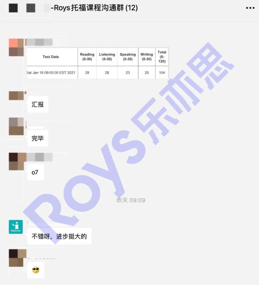 Roys樂亦思托福課程學(xué)員實現(xiàn)97到105的進步
