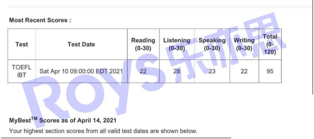 Roys樂(lè)亦思托福課程學(xué)員實(shí)現(xiàn)75到95的突破