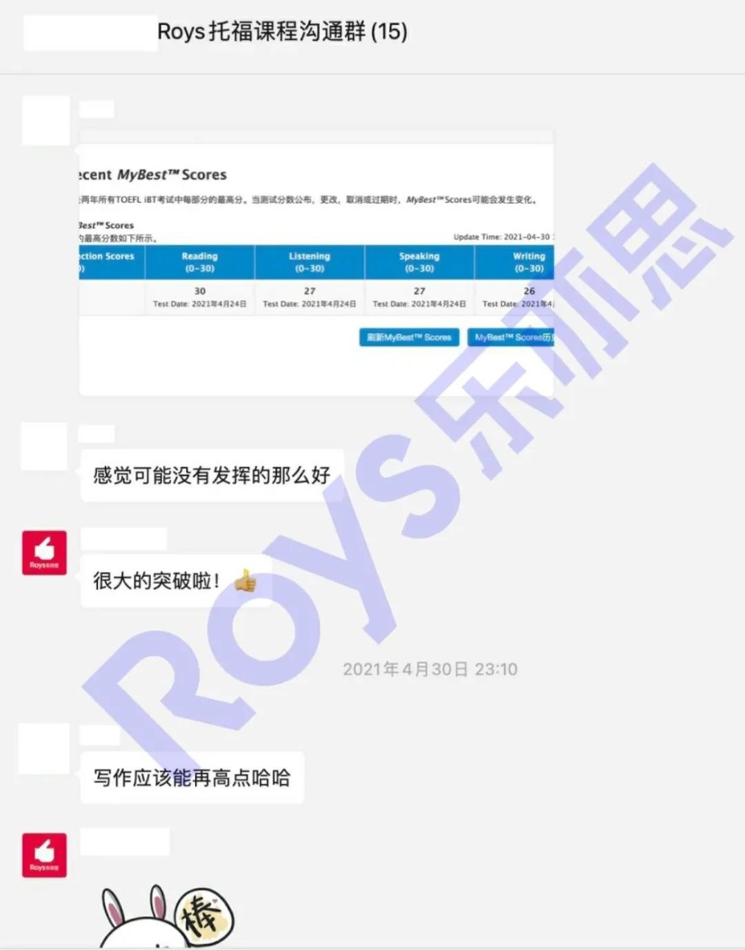 Roys樂亦思托福課程學員實現46到68的突破,下一站爭取更高分!