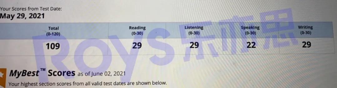 Roys樂亦思托福課程學員實現(xiàn)93到110的突破