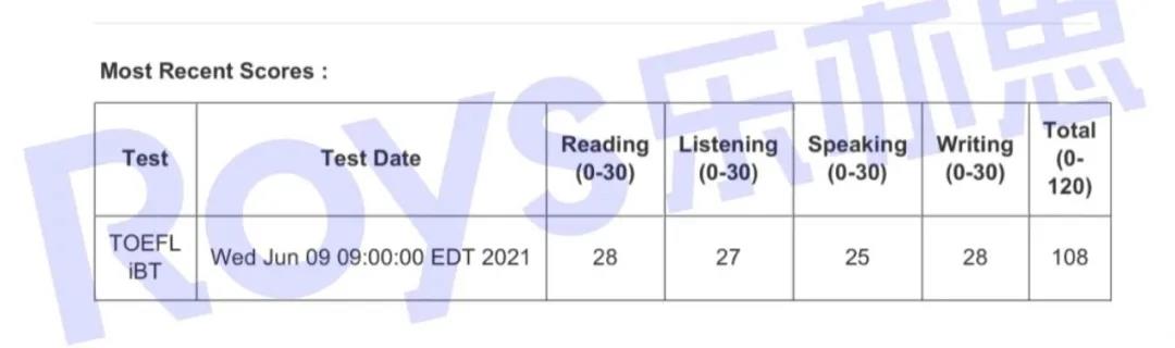 Roys樂亦思托福課程學(xué)員實(shí)現(xiàn)97到108的突破