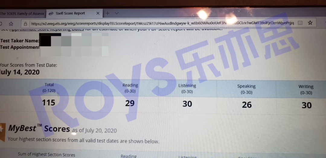 趙同學參加樂亦思托福培訓,拿到聽力寫作雙滿分,突破自己,提分22,總分超高分115,實力只拿分數(shù)說話。