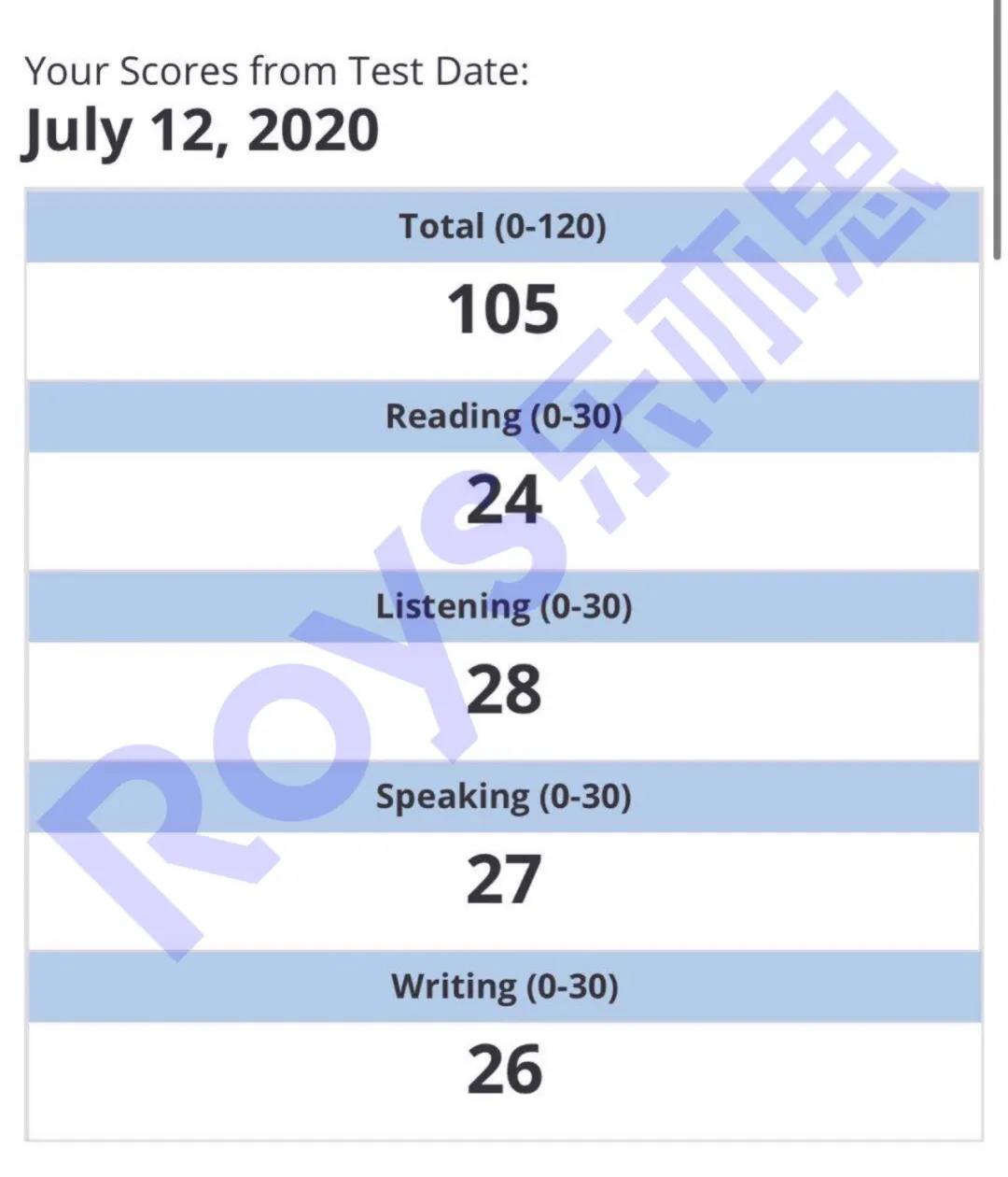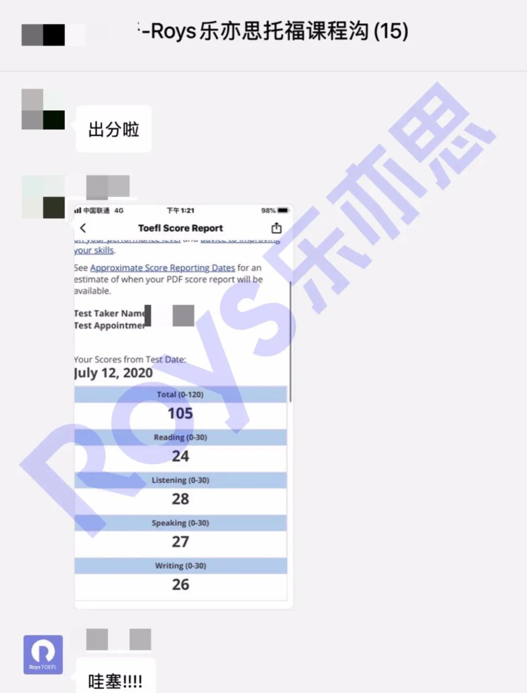 Roys樂亦思托福課程學(xué)員培訓(xùn)18天拿下105