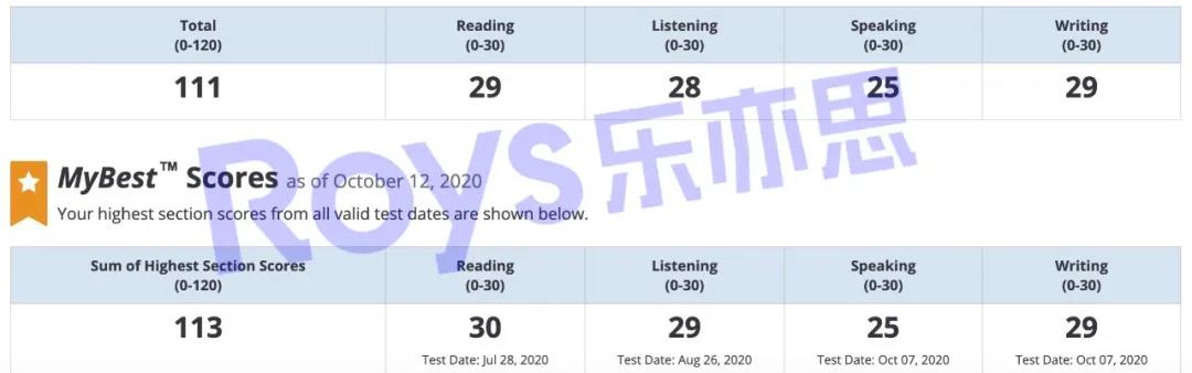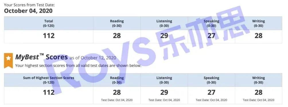 Roys樂亦思托福課程學(xué)員實(shí)現(xiàn)93到104的跨越