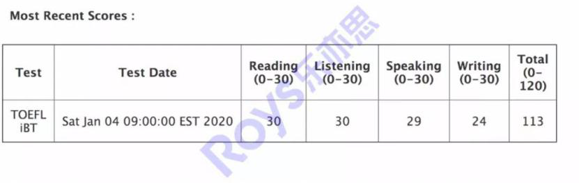王同學(xué)經(jīng)過樂亦思托福圣誕短期一對(duì)一集訓(xùn), 積極配合老師和督導(dǎo), 在2020年的首場托福考試中, 斬獲閱讀聽力雙滿, 口語29分, 總分113分的高分成績, 新年“鼠”你最棒!!