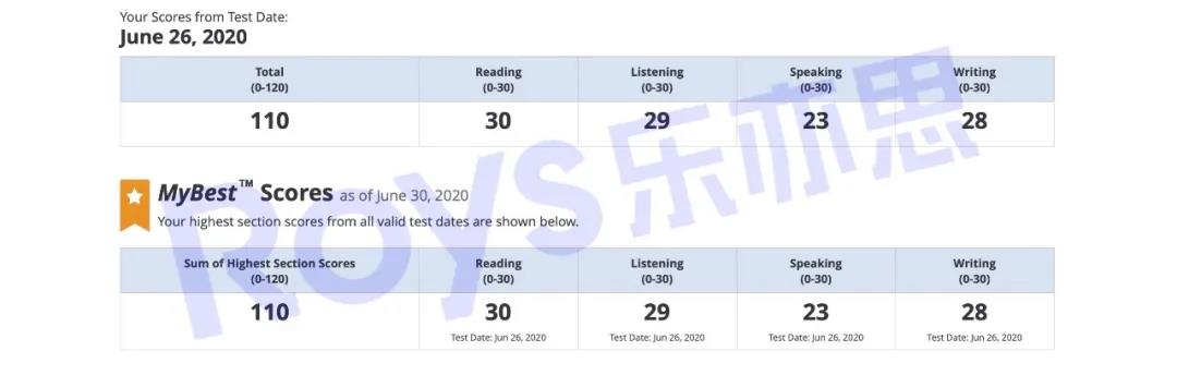 王同學(xué)經(jīng)過樂亦思托福一對(duì)一視頻課程集訓(xùn), 參加6月5日線上托福真考, 順利破百, 拿下105的好成績. 感謝各位老師的指導(dǎo), 最應(yīng)該感謝的是自己的努力與付出.