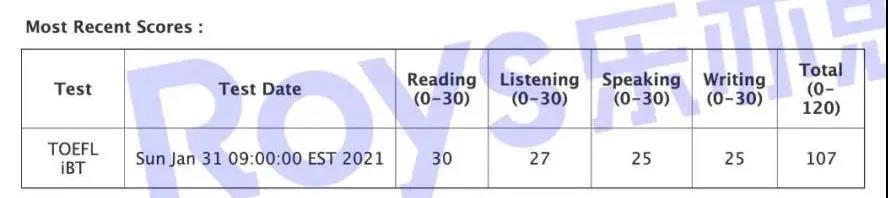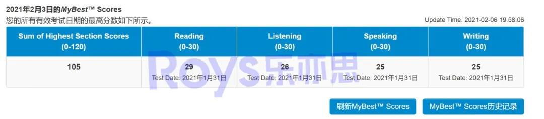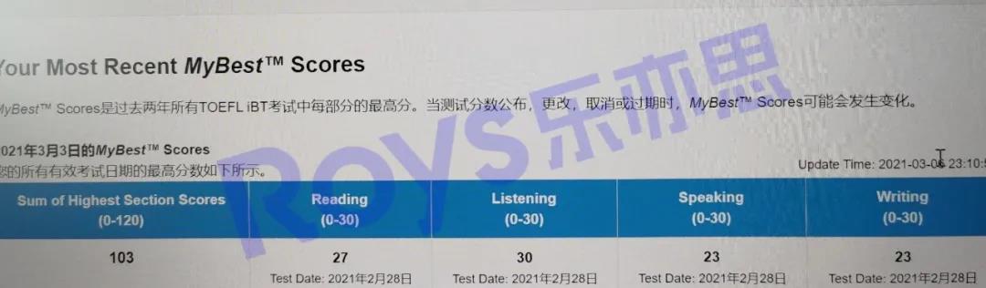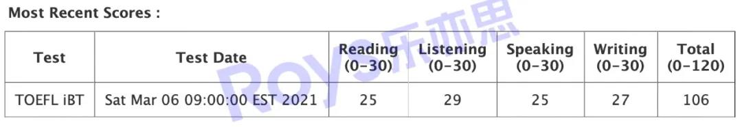 Roys樂亦思托福課程學員實現(xiàn)85到106的進步