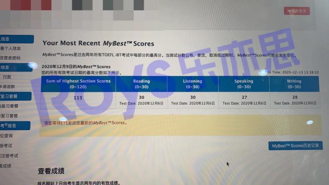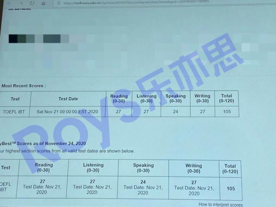 Roys樂亦思托福課程學(xué)員實(shí)現(xiàn)89到103的跨越