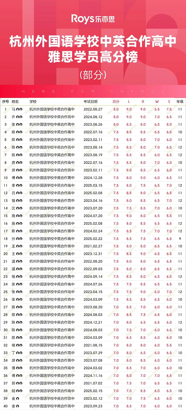 還有10年級(jí)暑假就來(lái)樂(lè)亦思的Z同學(xué),本身基礎(chǔ)不錯(cuò),但還想精益求精。經(jīng)過(guò)24天的一對(duì)一定制課程培訓(xùn),成功沖上了雅思7.5分。Z同學(xué)很有規(guī)劃,高一暑假就抓住黃金時(shí)機(jī)來(lái)訓(xùn)練,為后續(xù)名校申請(qǐng)和各科小分沖刺都留足了時(shí)間。每年都有一大批杭外學(xué)子通過(guò)樂(lè)亦思雅思的“早診斷 + 早規(guī)劃”實(shí)現(xiàn)高分突破。雅思學(xué)習(xí)是個(gè)長(zhǎng)期過(guò)程,考前集中沖刺也很關(guān)鍵,他們用成績(jī)證明,高分不是偶然,而是早規(guī)劃早準(zhǔn)備加上多方努力的必然結(jié)果。