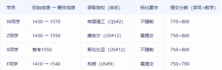 在名校錄取率屢創(chuàng)新低的當(dāng)下,SAT1500+已成為藤校及TOP30院校的"隱形門檻"。以下學(xué)員的備考軌跡,揭示高分背后的科學(xué)規(guī)劃: