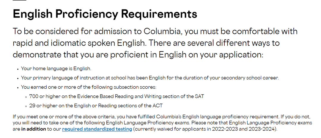 例如: 滿足SAT的EBRW部分取得700分以上的成績, 申請哥倫比亞大學時可免除提交語言成績.