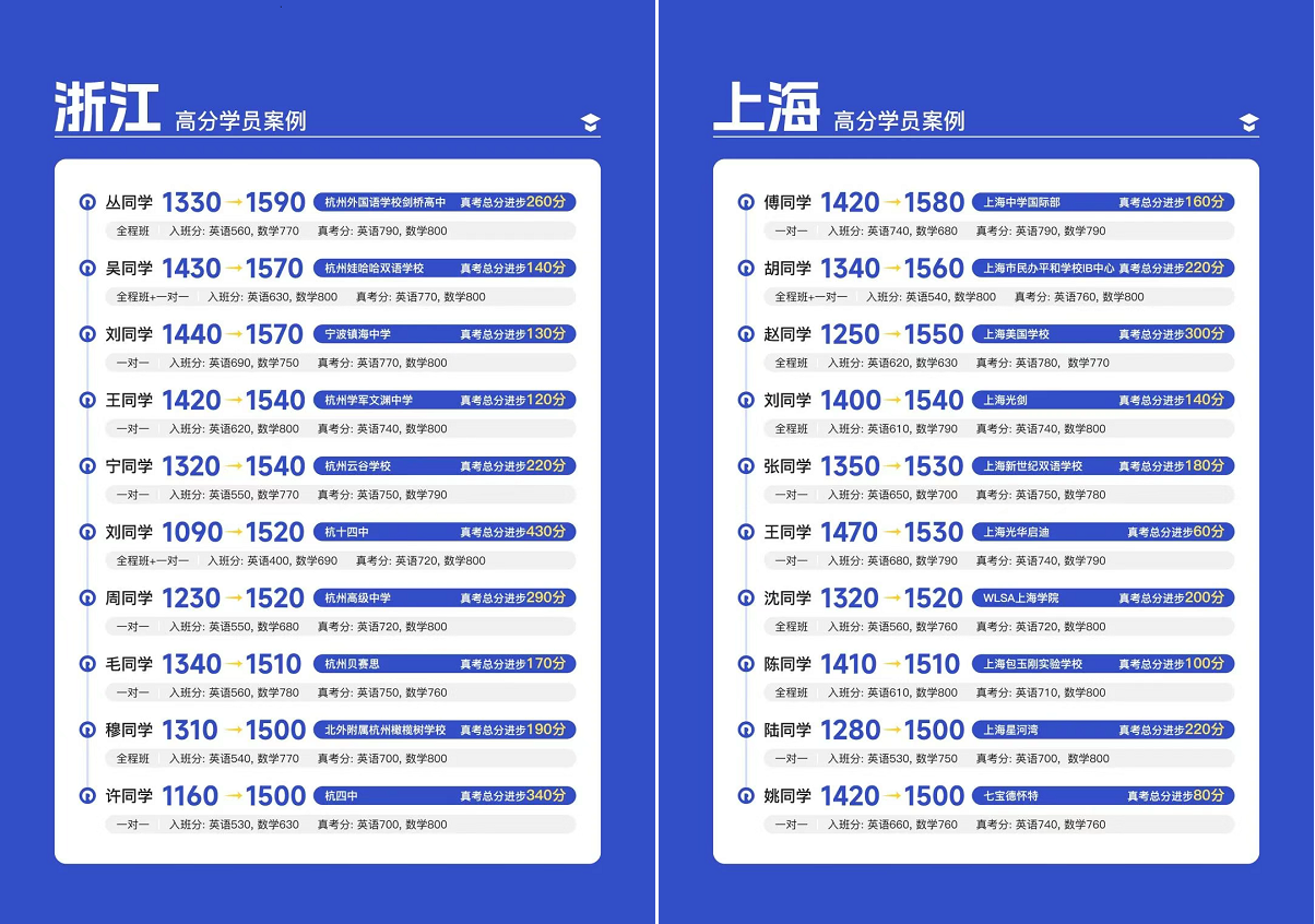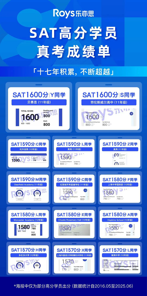 十七年來,樂亦思的足跡遍布五湖四海,學(xué)員來自浙江、上海、北京、香港、廣東乃至美國。他們或線下集訓(xùn),或線上交流,共同見證了從“小白”到SAT1500+的蛻變。