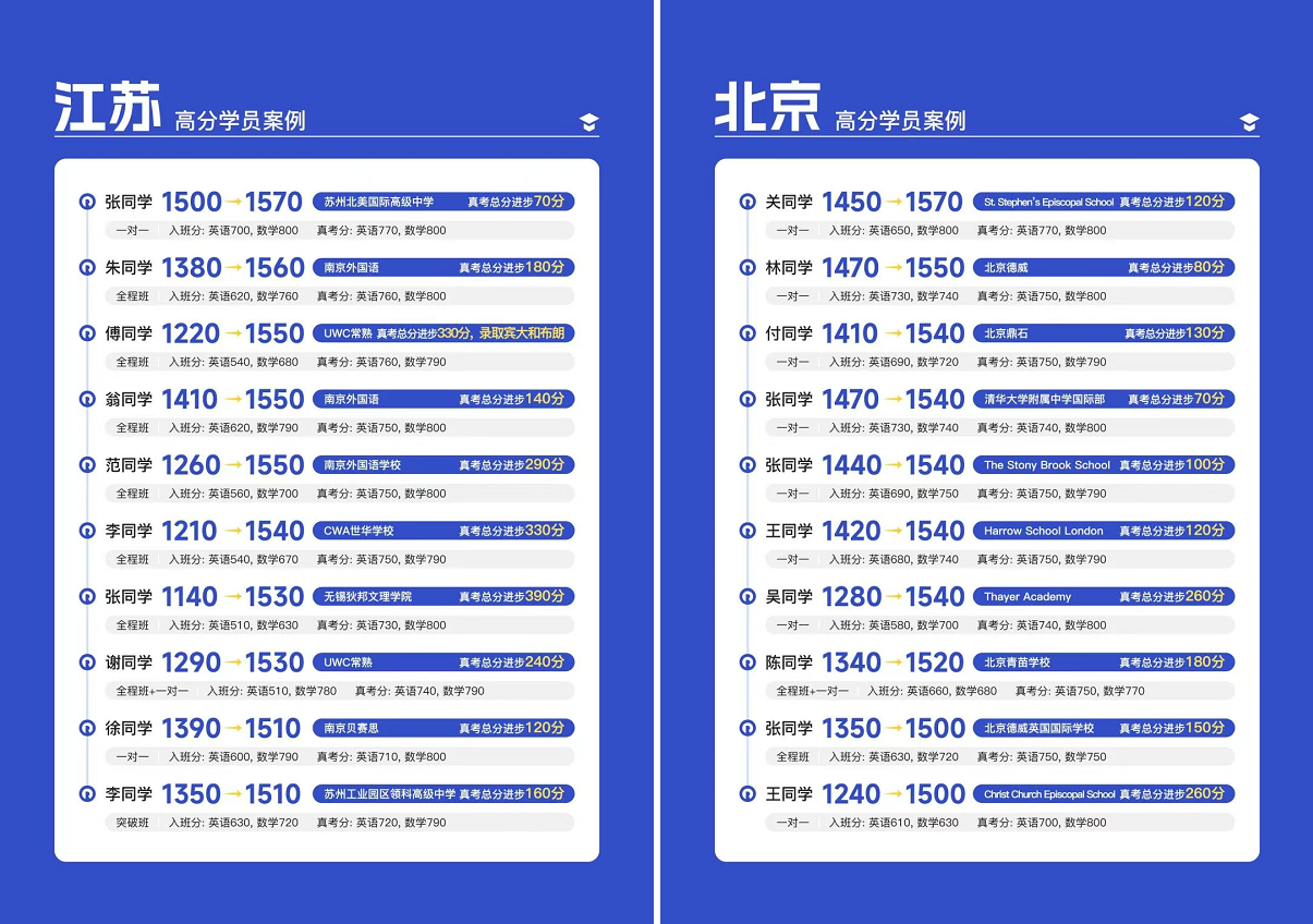 作為全中國首家且唯一一家擁有千位數(shù)SAT1500+高分學(xué)員的機構(gòu),我們用真實可溯的成績,詮釋了教學(xué)實力的真諦。