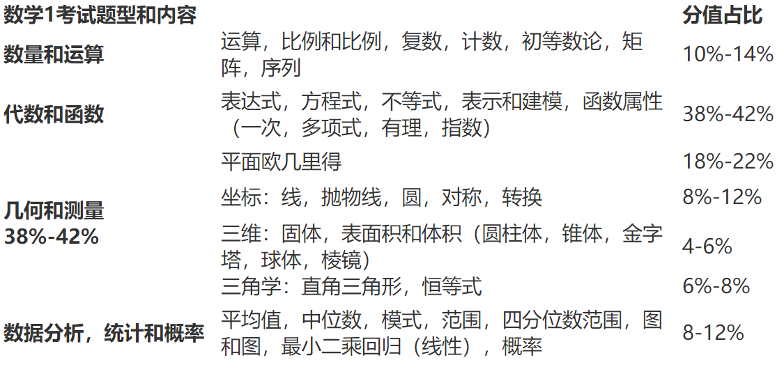 二、①SAT2數(shù)學的Level 1考試內(nèi)容如下: