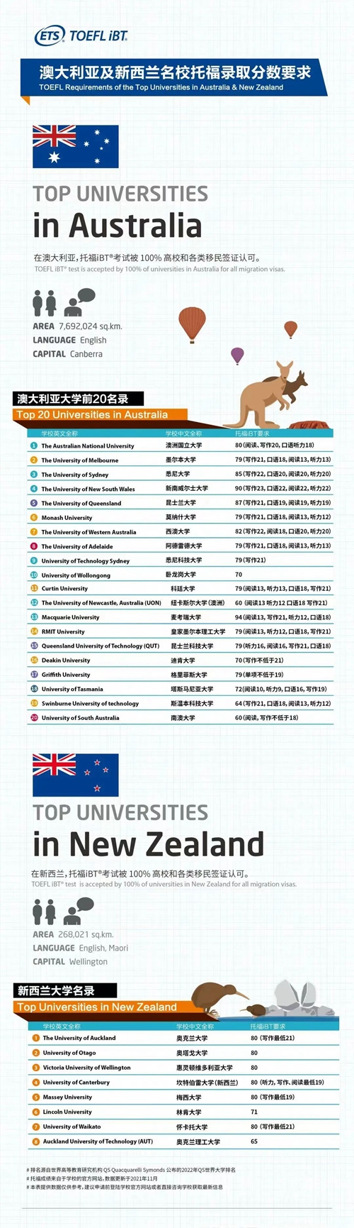 近日,ETS托??荚嚬俜焦剂?024年最新的美國、英國、加拿大、澳大利亞等TOP學校的托福申請成績要求,小編已經(jīng)為大家整理好了,一起來看看吧~