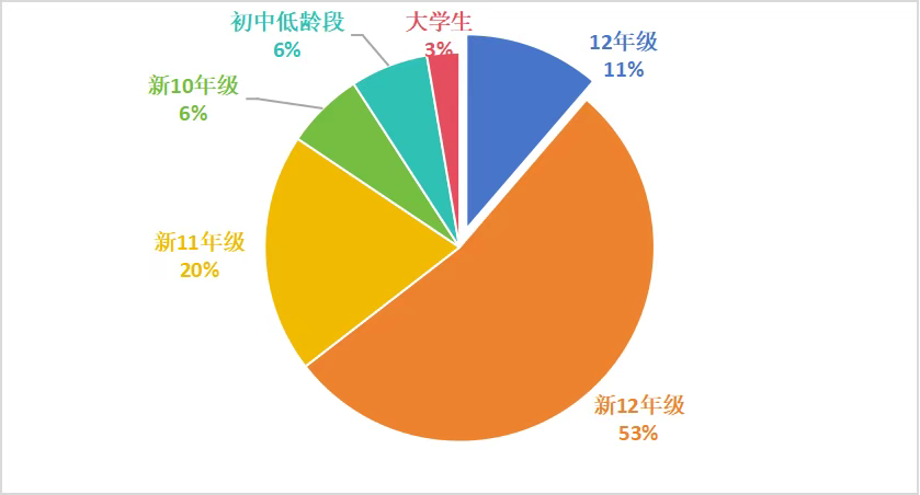 在這些高分學(xué)員中,53%來(lái)自新12年級(jí),20%是新11年級(jí)的同學(xué),甚至還有6%的新10年級(jí)同學(xué)也加入了這一行列。越來(lái)越多的低年級(jí)同學(xué)選擇更早地接觸托福,通過(guò)學(xué)習(xí)集訓(xùn)和參加考試,拿下理想分?jǐn)?shù),從而掌握語(yǔ)言和時(shí)間上的雙重優(yōu)勢(shì)。在托福100+分段中,年齡最小的是一位新7年級(jí)同學(xué),他斬獲了111分的高分!