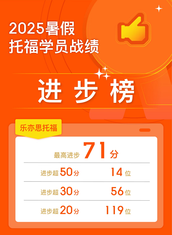樂(lè)亦思托福2025年暑假已圓滿(mǎn)收官,申請(qǐng)季與備考無(wú)縫銜接。接下來(lái)的10月更是ED沖刺的最后時(shí)機(jī),還沒(méi)有拿到目標(biāo)分?jǐn)?shù)的同學(xué),可得抓緊時(shí)間開(kāi)展你的巔峰沖刺了!歡迎大家前往樂(lè)亦思官網(wǎng)咨詢(xún)我們的秋季托福課程,高效備考!