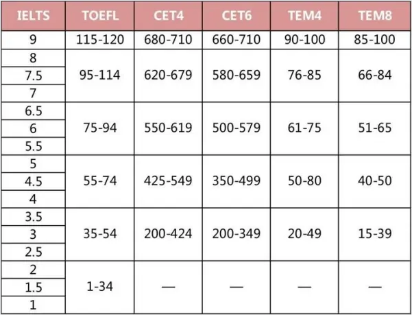 如上圖所示,四級(jí)550分在托福中約為75分的水平,是一個(gè)不錯(cuò)的基礎(chǔ)分?jǐn)?shù)。